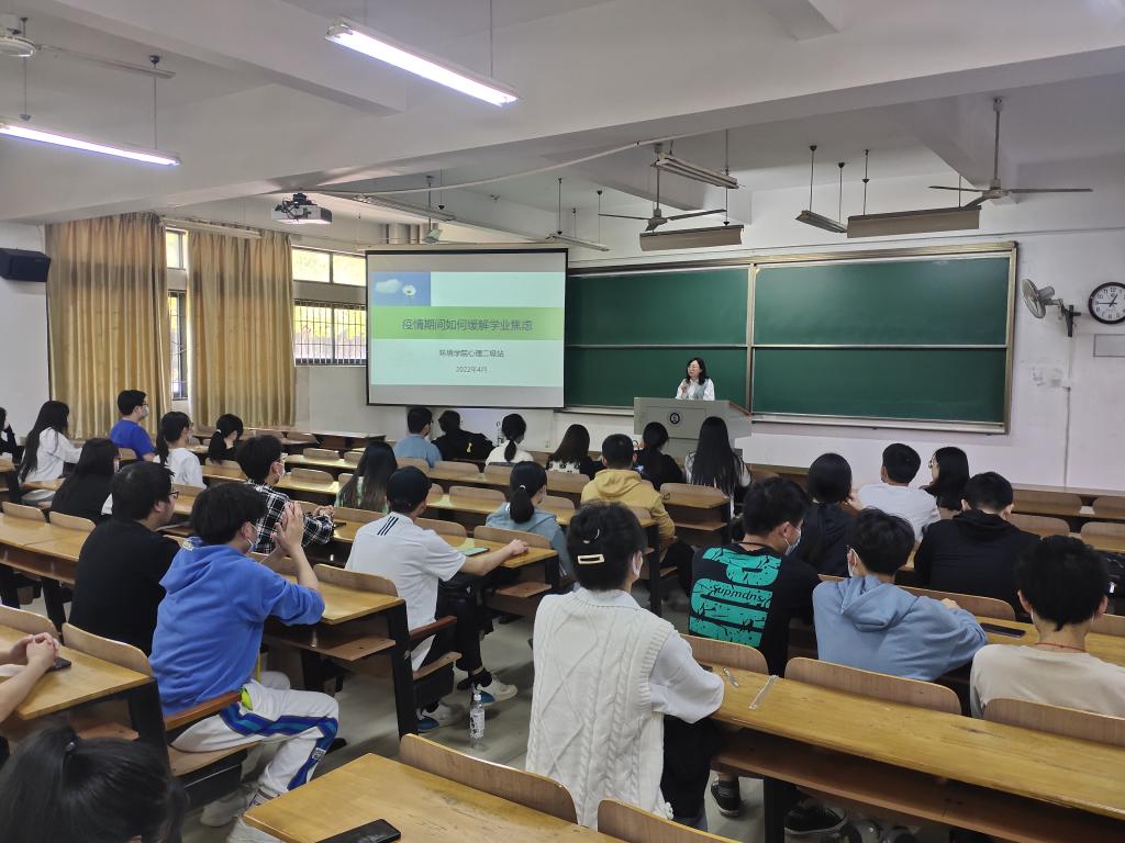 4月7日下午,一场“疫情期间如何缓解学业焦虑”减压讲座在06-110教室开展,学院辅导员姚瑶面向全院学生讲解。