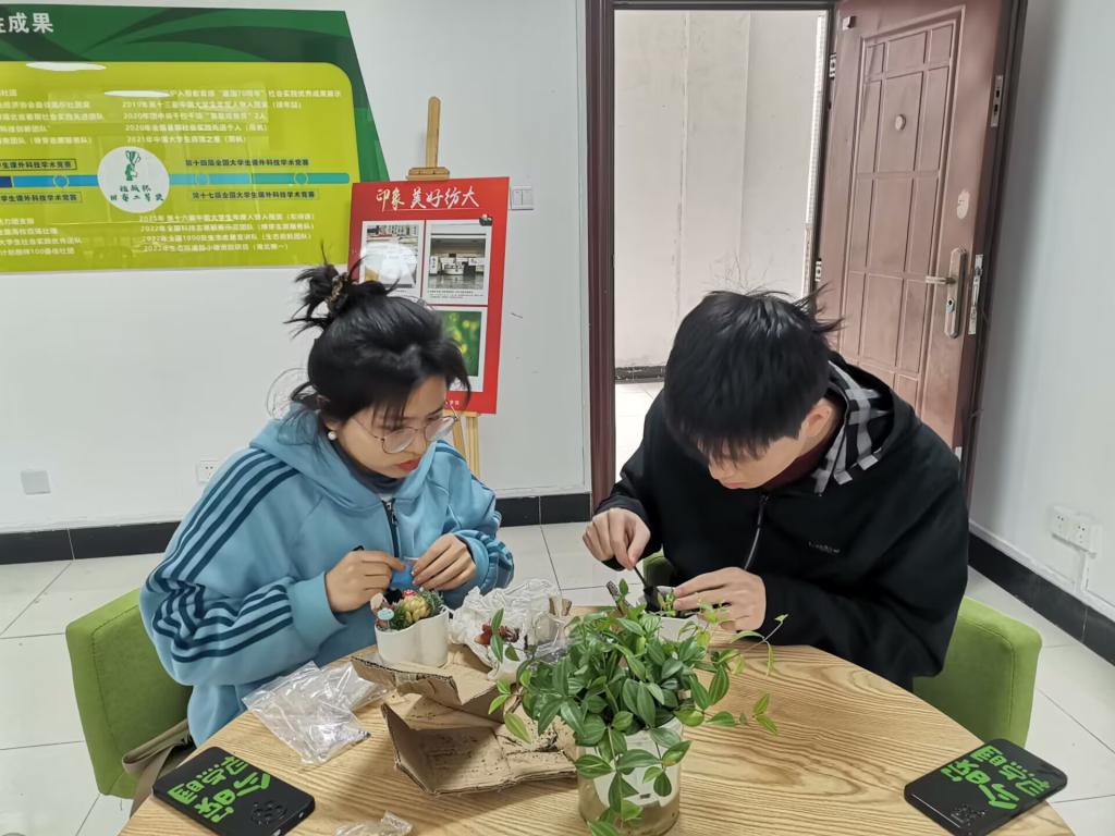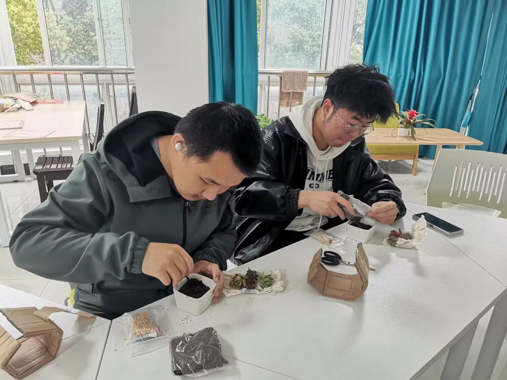 绿色以其特有的方式治愈着人们的心灵,抚平心中的焦虑。3月25日,在10栋绿芽创新实践工作站开展多肉种植活动,让同学们在这个春天种下希望。绿色是人间值得,更是人间难得,通过让学生动手种植绿植,引导同学们在亲身经历、亲自动手的同时把烦恼埋进土壤,种下希望,与绿植共成长。“种下一颗小多肉,就好像有了一个新伙伴,每天我都很期待它有新变化。”给排12102班李嘉伟分享到。