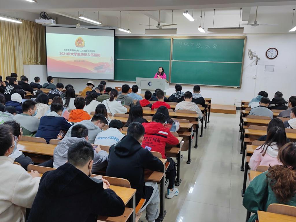 最后,学院发出号召,“携笔从戎砺青春,报效祖国献忠诚”,希望同学们把爱国之心化为报国之行,踊跃应征入伍,在军营大熔炉里淬炼成钢。
