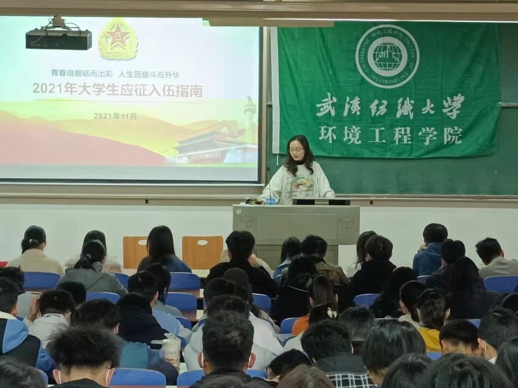 为进一步激发大学生参军入伍、报效国家的积极性,学院早部署、早动员,11月13日-14日,一场面向各年级征兵动员在环境学院拉开,各年级辅导员举行了入伍政策宣讲。