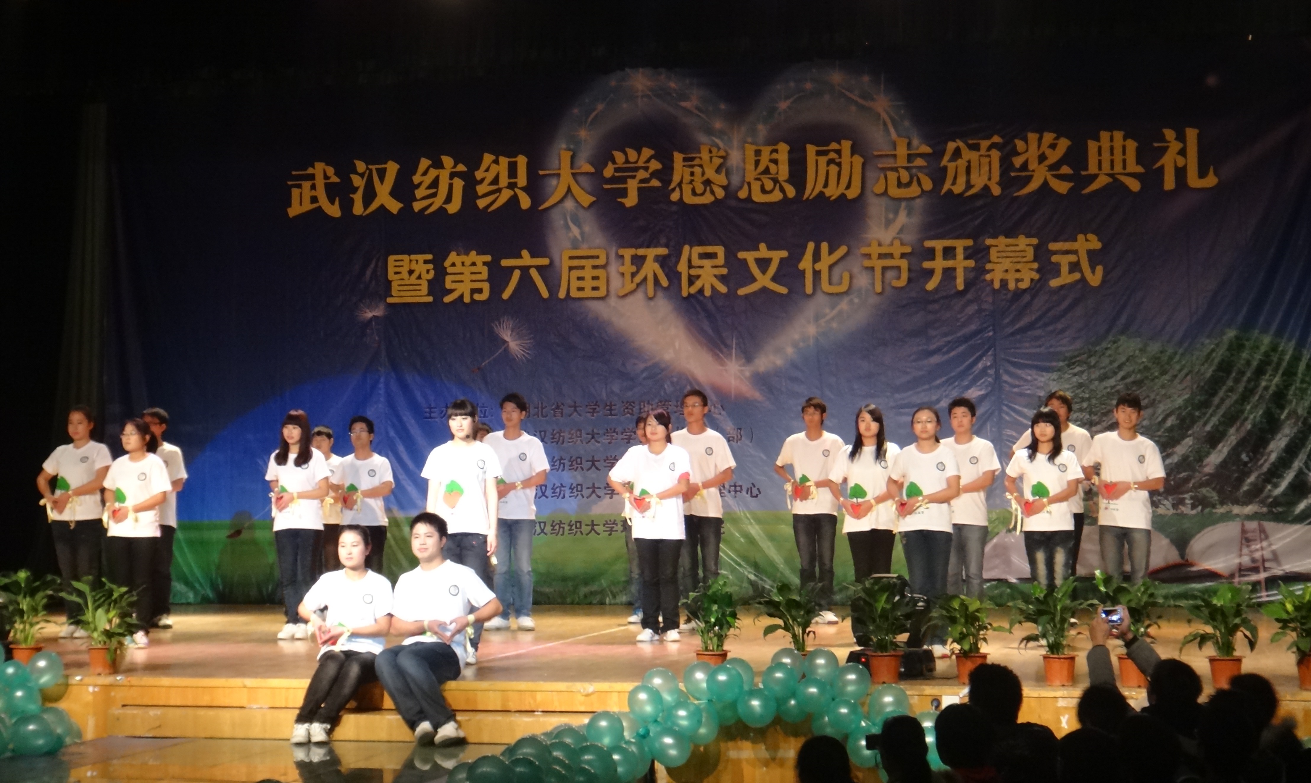 感恩励志颁奖典礼暨第六届环保文化节开幕式拉开帷幕,晚会秉承环境学院一贯的低碳理念,以“感恩励志绿色环保”为主题,从艺术角度将自强励志和环保理念融合为一体,为大家呈现了一台绿意盎然的视听盛宴。相关职能部门负责人、各二级学院分党委副书记、环境学院党政负责人以及武汉大学、华中科技大学等兄弟院校的环保协会负责人一同观看了整场晚会。