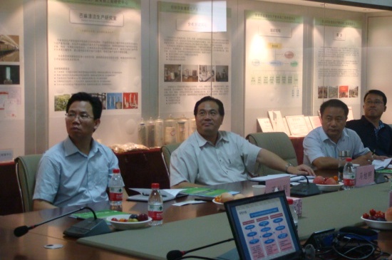 韦一良校长代表学校对马旭明常委一行来校指导工作表示欢迎,并简要介绍了学校的基本情况。曾庆福教授从工程中心概况、前期研究成果、未来工作方案等方面向马常委做了汇报,着重介绍了苎麻产业园及工程示范情况。马常委听得仔细,记得详实,并不时询问具体情况。马常委指出,曾教授及其科研团队前期科研成果丰硕,并且得到有效产业化推广,在科技创新、成果产业化方面走出了一条新路。马常委非常关注“推进纺织印染废水处理回用技术产业化,探索新的无水清洁染整技术”和“构建全产业链实现零排放的苎麻生态产业模式,形成规模化资源型生态产业”等项目,认为这是功在当代、利在千秋的事业,是两型社会建设的典型,并再三嘱咐东湖高新区管委会做好项目服务与技术推广工作。