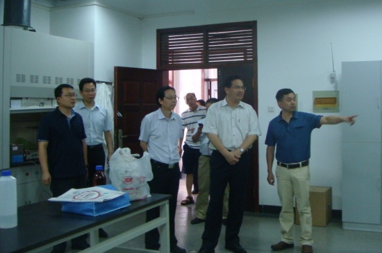 随后,马常委在韦校长、曾校长的陪同下,实地参观了教育部工程研究中心。在实验室,马常委向科研人员详细询问纺织“印染废水微波无极紫外光催化氧化分质处理技术”、“规模化苎麻生态产业链构建关键技术”相关情况,对曾教授取得的丰硕成果表示由衷的钦佩,对其科研团队大力服务“三农”、践行环保事业给予高度评价,并对学校进一步推进科技创新、科技产业化等工作提出了建议。