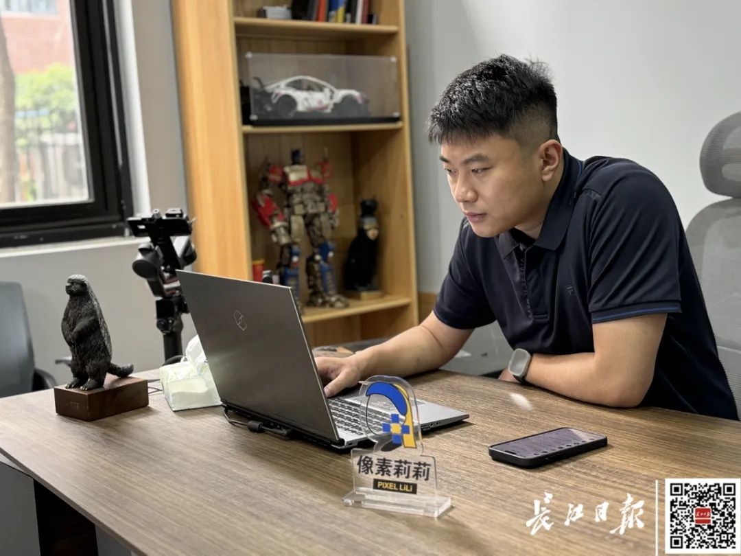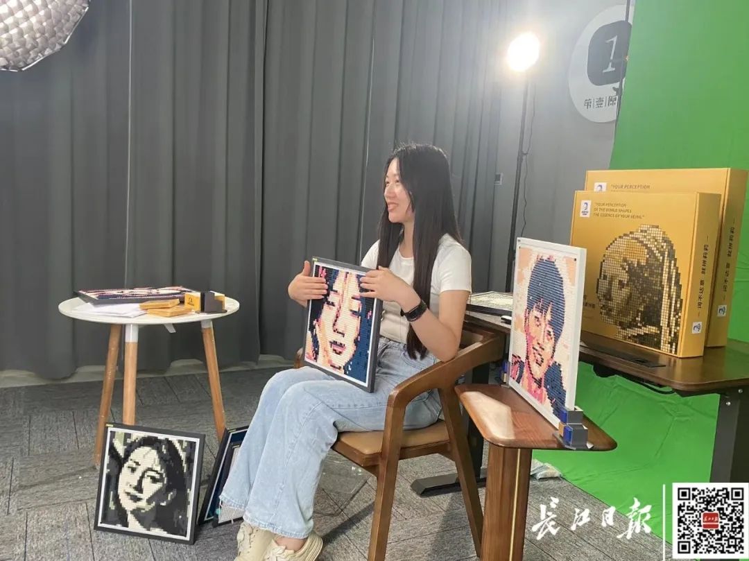 主播拿着马赛克头像拼图在做直播预演。记者蔡欣星 摄