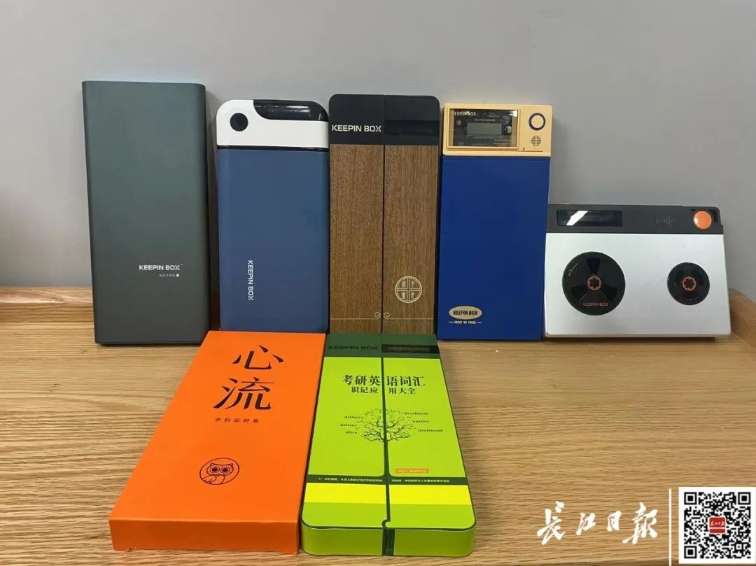 堵舜团队的手机定时盒已累计推出了五代产品(后排从左到右),前排两个为定制款。记者蔡欣星 摄