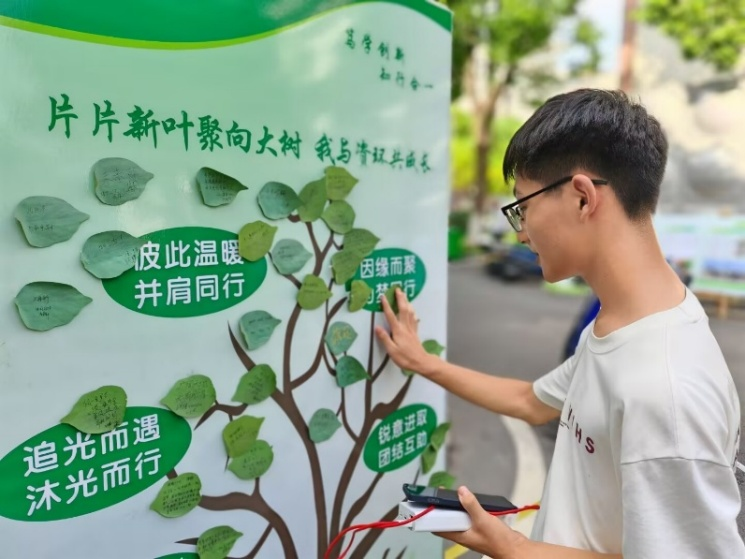 留影打卡“定格”,初遇即难忘。资环学院一站式服务驿站成了新生入学“第一打卡点”。“五湖四海资环人 相聚圆梦启新程”合影区,定格下一张张青涩又充满期待的笑脸;不少新生还在“资环大树”上挂上写满大学四年期许的“树叶”,以这样的方式约定:此后追光而遇,沐光而行。